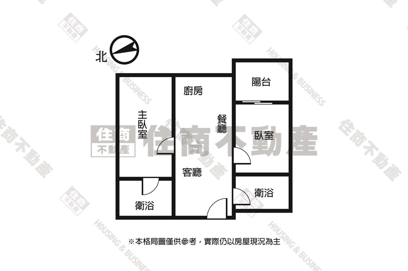 🔵 格局:2房2廳2衛1陽台