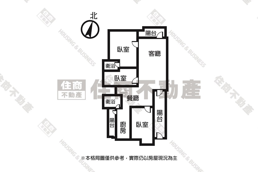 🔵 格局:3房2廳2衛3陽台